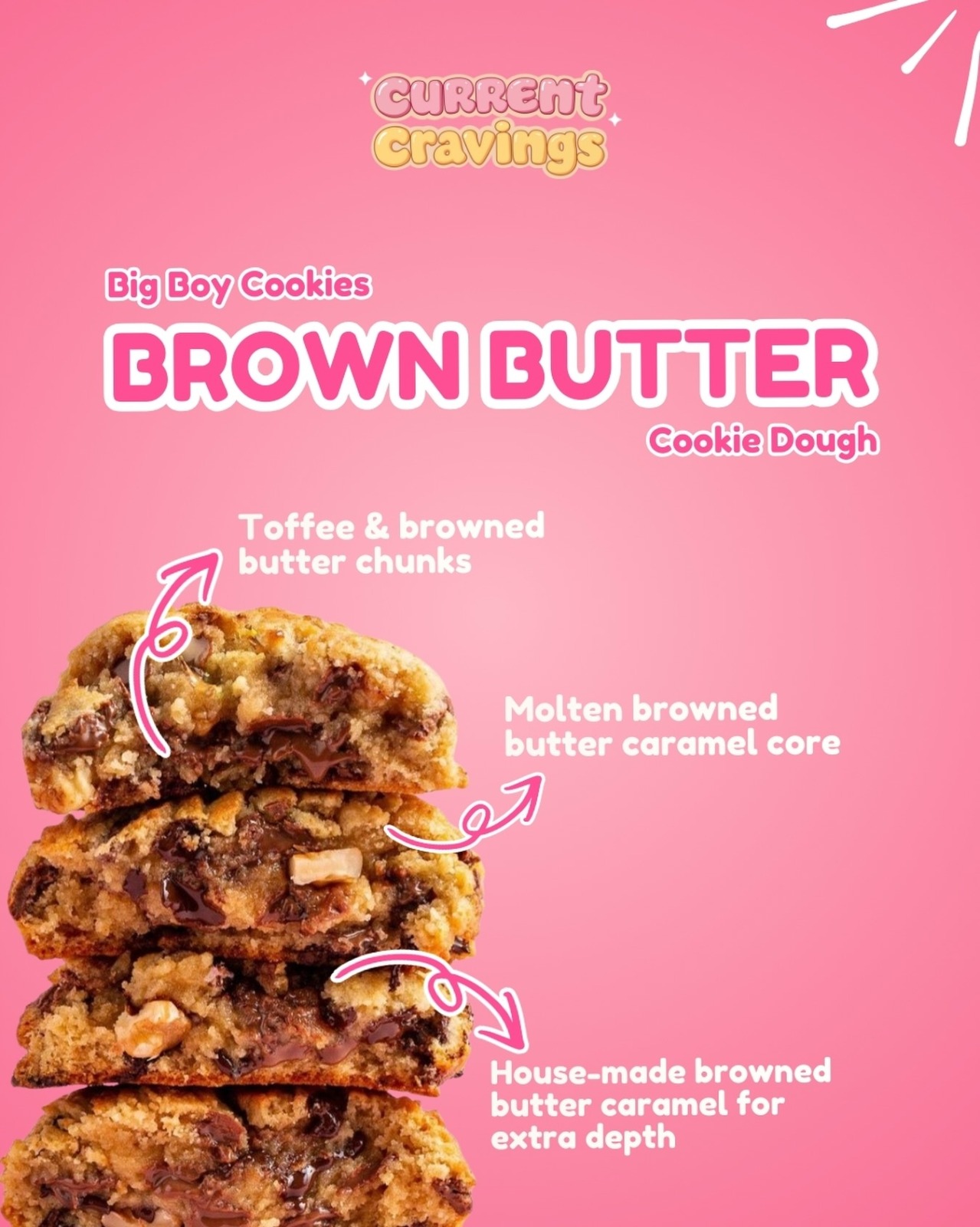 “I’ve tried bakeries all over the UK and Current Cravings is genuinely top tier. The White Choco Cookie is soft, buttery perfection.”